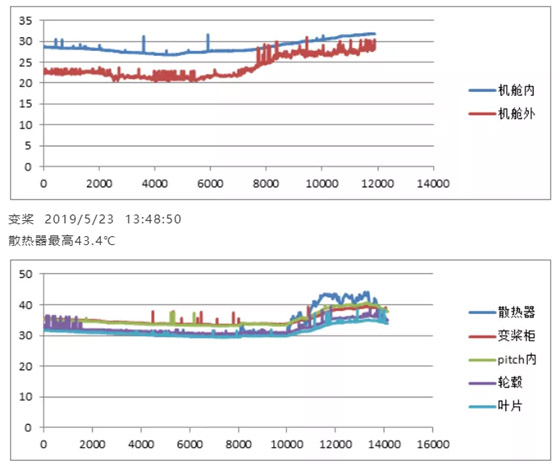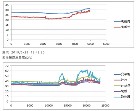 2、客戶案例:某風場02#風機(與01#機組相鄰)經過技改后,變槳溫度數據為: