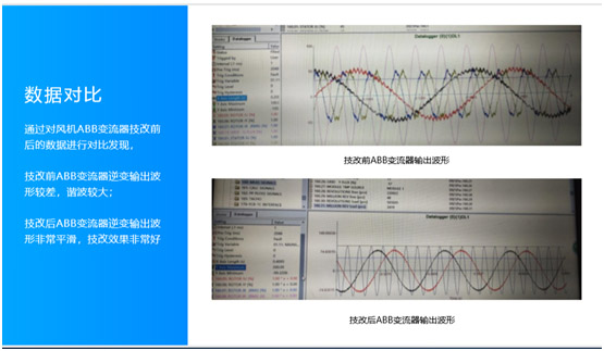 合信銳風通過實際案例的數據分析對比,經過技改后變頻器損壞率由8%已經直線減低到2%,在高溫夏季37°c,風速12m/s時,風機可以實現滿發。迅速降低發電量損失同時達到機組最佳性能狀態。