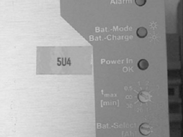 主控柜內 UPS 整定值的設定,檢查 UPS 的參數設置是否正確,一般不同型號的電控柜體,其 UPS 參數設置也略有不同,需要根據廠家要求的參數進行設置。使用一字螺絲刀旋轉調整箭頭指向,下圖已設置時間 Tmax 為 10 分鐘,電池容量設置為 7.2 Ah。見下圖